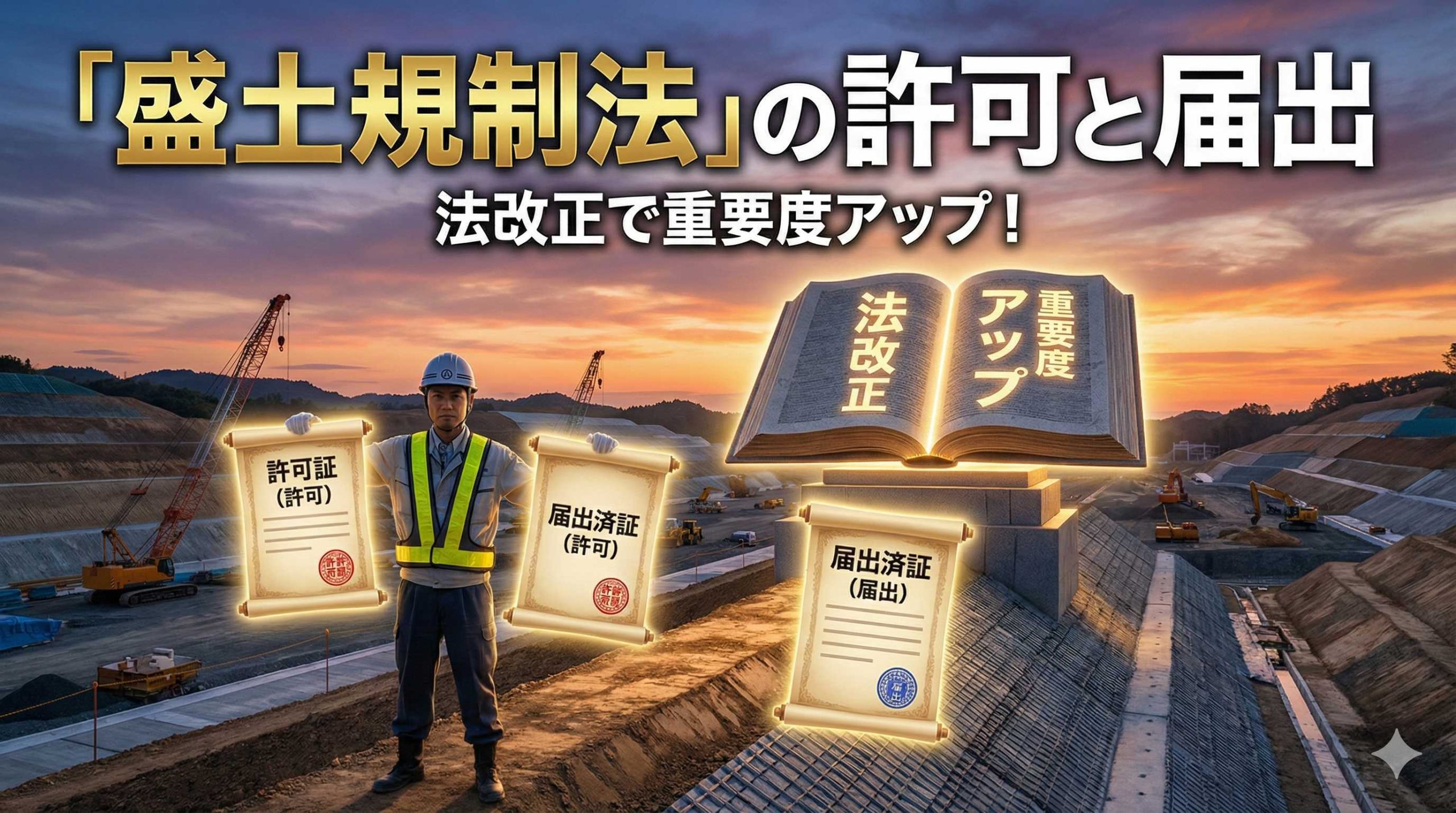 盛土規制法は、まずは工事の規模による「許可」の数字を固めること。その上で、後出しの「届出」の期限を整理すれば得点源になります。